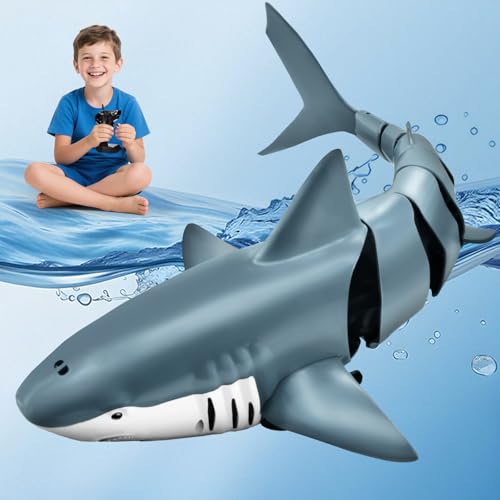 YOOHBERRYS Tiburon Teledirigido, 2.4GHz Tiburon Teledirigido Acuatico, RC Barco Tiburón con Luces y Chorros de Agua, Juguete de Piscina Regalo para 6+ Años (Tiburón Teledirigido Extra Grande)